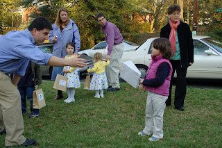 We had a wonderful Easter Sunday, and we hope you did, too! Since I'm Catholic and Steve is Jewish, I have to give him some pretty big props for pulling it together to not only help get things set for our day, but also to be in the car so early this morning. After 7:30 am mass, we had a nice breakfast for just the three of us, followed by a dinner at our house for 40+ (thankfully with some help from all our guests)! That's how we roll around here... Even though it was 53 degrees outside, it was a gloriously sunny, clear day and the heaters on our deck kept us warm so that it didn't feel too claustrophobic inside (or so we hear...). We also had a quick Easter egg hunt on our lawn for our littlest guests and neighbors - here are some pics from that portion of our day: